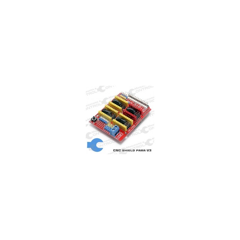 CNC Shield V3 GRBL La Arduino CNC Shield es una pequeña placa que permite controlar hasta 4 motores paso a paso fácilmente con tu Arduino gracias a su formato shield. Soporta 4 controladores de potencia Pololu A4988 o Pololu DRV8825 (no incluidos) y dispone de todas las conexiones necesarias para conectar interruptores de final de carrera, salidas de relé y diversos sensores. Es totalmente compatible con el firmware de control GRBL y puede ser utilizada con cualquier modelo de Arduino, aunque se recomienda utilizar un modelo del tipo Arduino UNO o Arduino Leonardo.Con esta placa podrás disponer de un sistema completo para montar tu propia máquina CNC, cortadora láser o cualquier otro sistema que necesite un control preciso con motores paso a paso.El CNC Shield V3 para Arduino Uno es una herramienta esencial para entusiastas del mecanizado y la fabricación digital. Esta placa de expansión transforma la placa base Arduino Uno en un potente controlador para máquinas CNC, impresoras 3D y sistemas de corte y grabado láser. Su diseño avanzado y su amplia compatibilidad la convierten en una opción destacada para proyectos de alta precisión en el campo de la automatización.